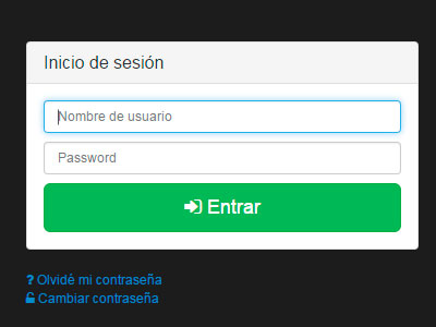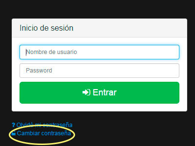 Esta liga los llevará al formulario de cambio de contraseña donde tendrá que insertar correctamente sus datos (usuario y la contraseña que tiene registrada al día) para realizar el cambio confirmando dos veces la nueva contraseña.