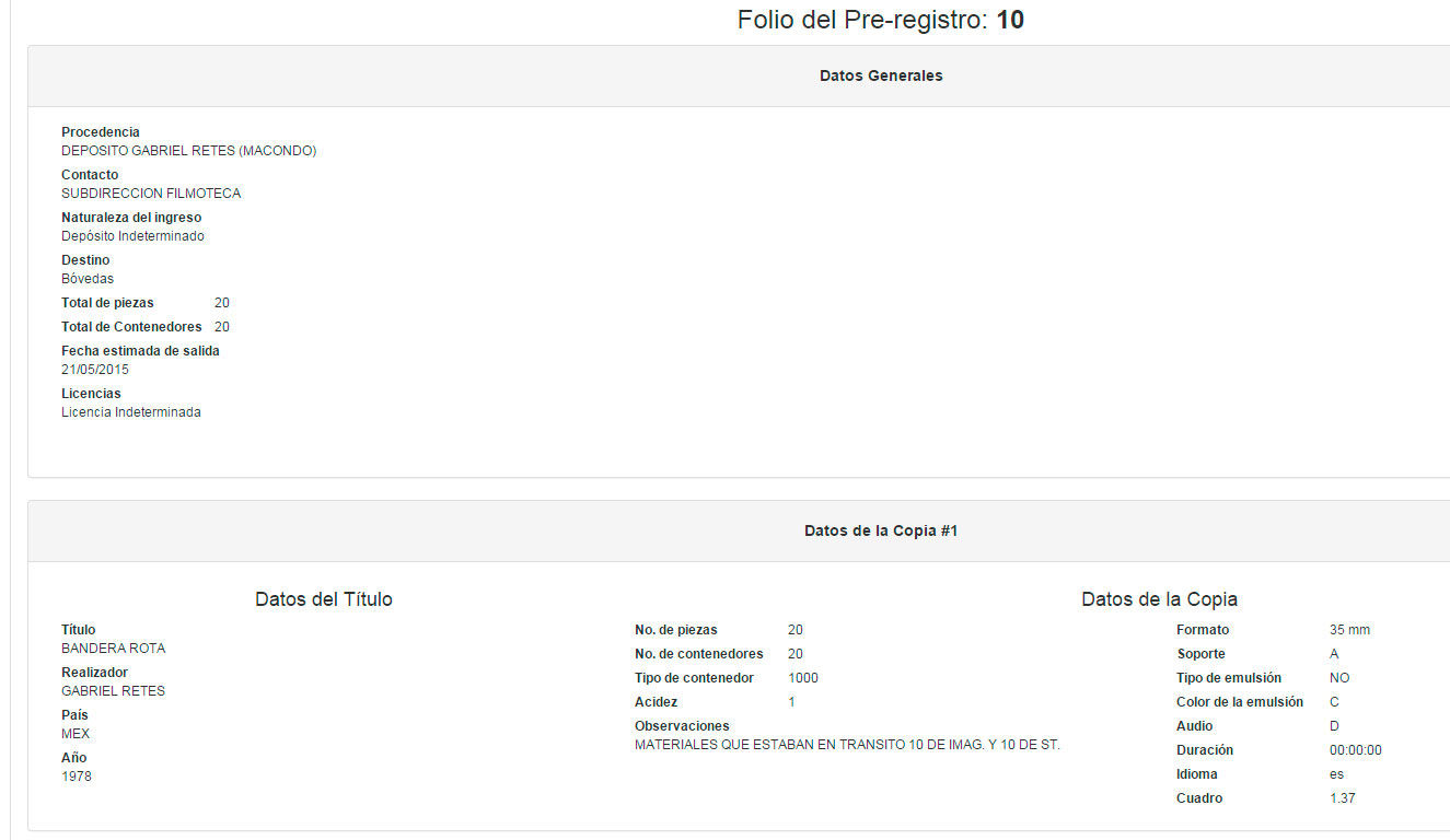 Para capturar la información de las copias, existen al menos 3 campos obligatorios indispensables para la correcta ubicación de estos materiales en bóvedas (Formato, Soporte y Color de la Emulsión).